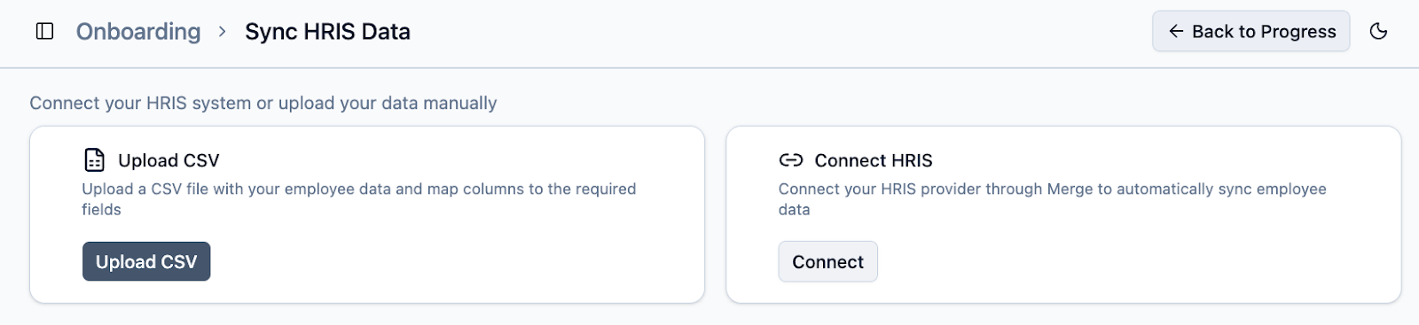 - HRIS integration is a one-time setup that will require someone with administrative access to your HRIS
