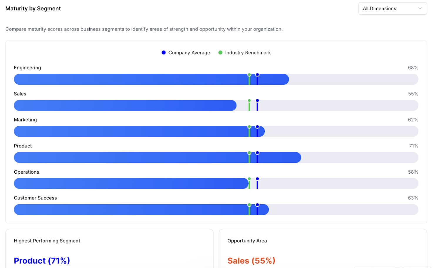 You can compare to All Surface customers (the default), your industry, or companies of your size. Maturity model distinctions are as follows:
